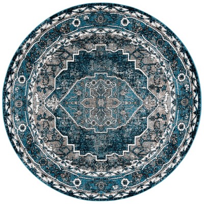 Vintage Hamadan VTH226 Power Loomed Indoor Area Rug - Blue/Ivory - 6'7" Round - Safavieh