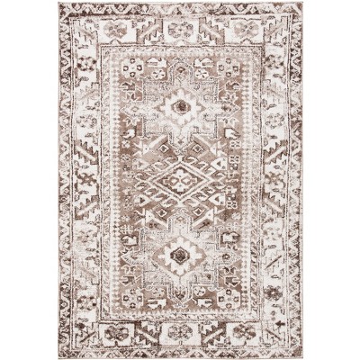 Elevate your space with a touch of elegance and warmth with our small rectangle area rug in a rich brown and black color palette. Sized perfectly at 2 feet 7 inches by 5 feet with a plush height of 5/8 inches, this rug brings both comfort and sophistication to any room. Crafted in Turkey using the precision of power loomed technology, this transitional style rug is made of durable polypropylene, ensuring it is both long-lasting and easy to maintain.