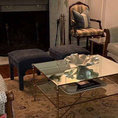 I purchased 2 blue studio McGee ottomans recently and really like the products. They are sturdy, feel well made and are the right height to be an ottoman or stool. No assembly required