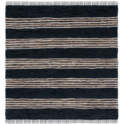 Vintage Leather VTL201 Hand Woven Indoor Area Rug - Black/Grey - 6'x6' - Safavieh
