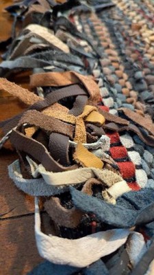 I absolutely love this rug! It came up at the end of my search, I was about to order a different rug when I noticed this one. The braided appearance intrigued me and when I read it had leather strips I was sold. This rug is even more impressive in real life and, my room smells like leather! The ends have the most color, with the center 3/4 having the white cotton strips. Which is fine, I like it!
