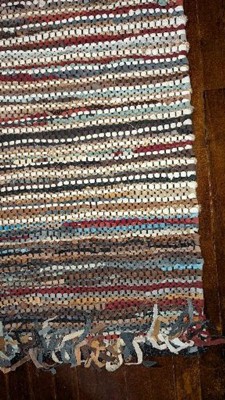 I absolutely love this rug! It came up at the end of my search, I was about to order a different rug when I noticed this one. The braided appearance intrigued me and when I read it had leather strips I was sold. This rug is even more impressive in real life and, my room smells like leather! The ends have the most color, with the center 3/4 having the white cotton strips. Which is fine, I like it!