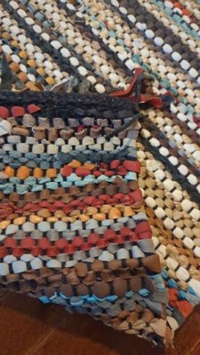 I absolutely love this rug! It came up at the end of my search, I was about to order a different rug when I noticed this one. The braided appearance intrigued me and when I read it had leather strips I was sold. This rug is even more impressive in real life and, my room smells like leather! The ends have the most color, with the center 3/4 having the white cotton strips. Which is fine, I like it!
