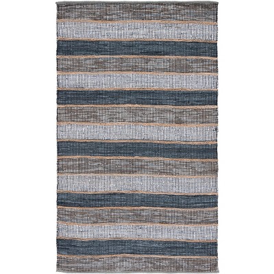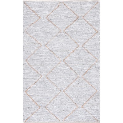 Vintage Leather W/ Fringes VTL602 Hand Woven Indoor Area Rug - Grey/Natural - 5'x8' - Safavieh