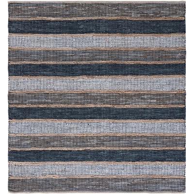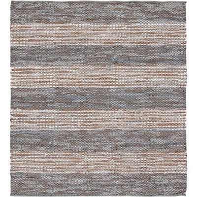 Vintage Leather W/ Fringes VTL602 Hand Woven Indoor Area Rug - Grey/Natural - 6'x6' - Safavieh