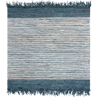 Vintage Leather W/ Fringes VTL702 Hand Woven Indoor Area Rug - Grey/Beige - 6'x6' - Safavieh