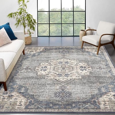 Vintage Medallion Distressed Area Rug Low Pile Non-Slip Throw Rug, 8'x10'