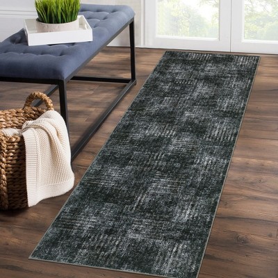 Vintage Persian Distressed Area Rug Washable Medallion Print Carpet, 2' x 6' Gray: Stain-Resistant, Low Pile, Indoor Use