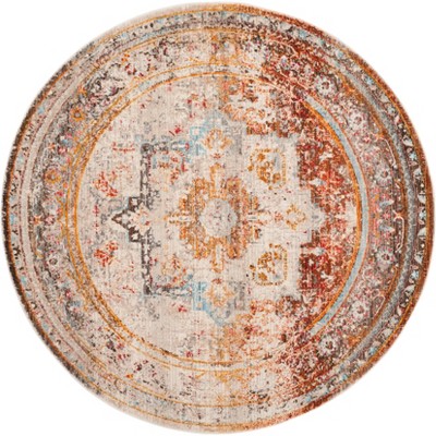 Vintage Persian VTP435 Power Loomed Indoor Area Rug - Saffron/Cream - 5' Round - Safavieh