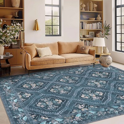 Vintage Persian Washable Rug – Foldable Low Pile, Non-Slip & Pet-Friendly for Bedroom, Dining Room, Office(8*10FT,Gray)