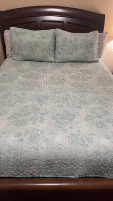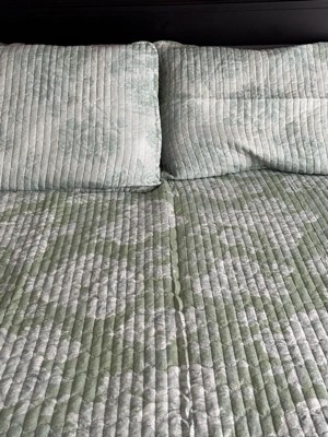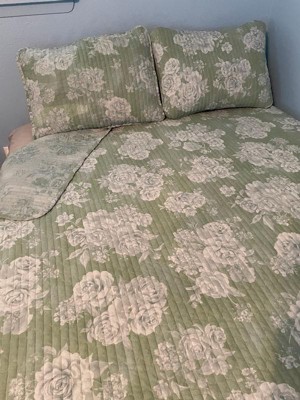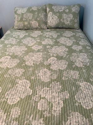 [This review was collected as part of a promotion.] Soft, breathable, and super cozy—this eucalyptus-colored quilt set is a dream! I love that it’s made from natural cotton and feels light but still warm enough for year-round use. The reversible floral side gives me an easy way to switch up the vibe without buying new stuff. It fits my queen bed perfectly and looks so fresh and clean in my room. I just wish that the edge scalloped and not straight. This set is definitely a simple way to refresh your bedroom for Spring/Summer!
