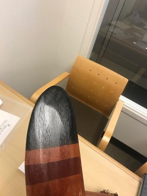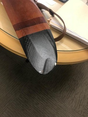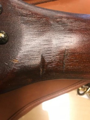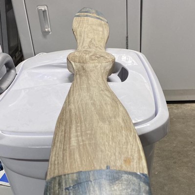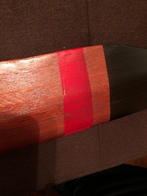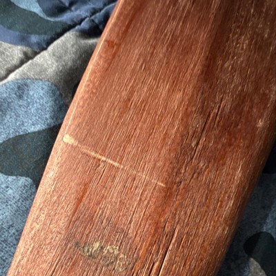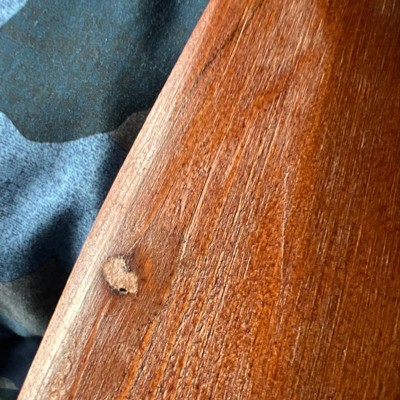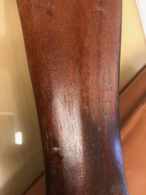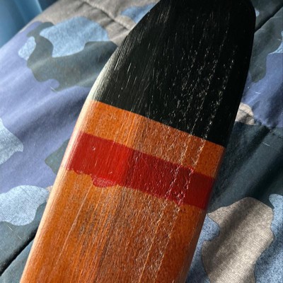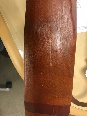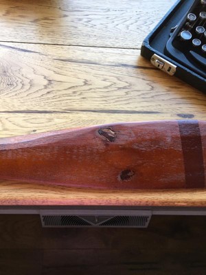 Paint is a mess on one end. Wood has a large scrap in it.