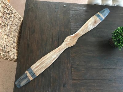 Showcase your adventurous side with this plane propeller decor mounted on your bedroom or living room walls. This item ships in 1 carton. Wood wall decor makes a great gift for any occasion. Can be hung horizontally or vertically using the keyholes on the back; nails and screws not included. Suitable for indoor use only. This item ships fully assembled in one piece. This is a single brown colored wall sculptures. Industrial style.