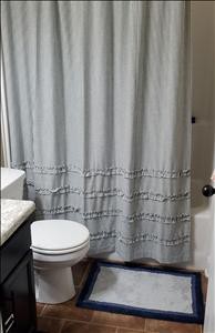 [This review was collected as part of a promotion.] I love love love the denim shower curtain with ruffles! We had only a simple off white shower curtain liner in our guest bathroom, but when we got this one, we decided it went with that bathroom decor better than the master bathroom! I like the added weight to the curtain, letting less outside "breeze" into the shower with you and allowing you to stay steamed and not chilled.