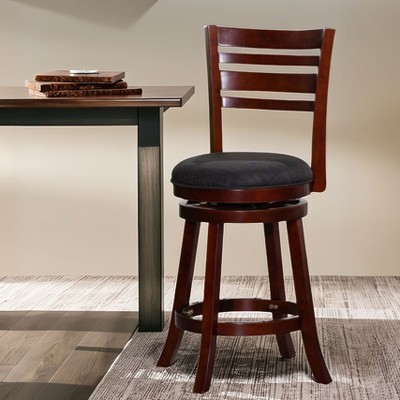 - Enjoy these traditional-looking counter stools in your home that not only feature a vintage brown coloring but also have a wide seat to help increase comfort while seated.