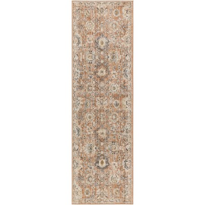 Vintage Washable Area Rug Non Slip Low Pile Rug Floral Print Distressed Carpet