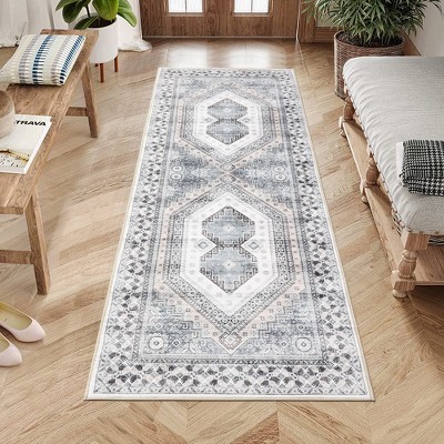 Vintage Washable Area Rug Non Slip Oriental Distressed Area Rug Boho Rug
