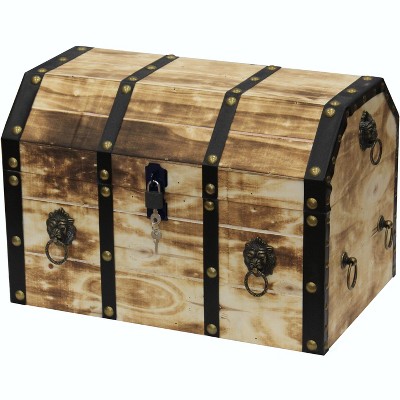 Large wooden storage trunk in distressed rustic finish