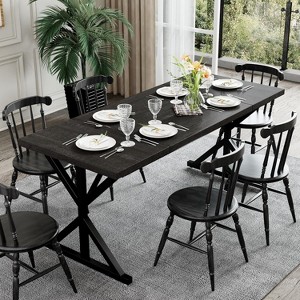 With dimensions of 70.87" L x 29.53" W x 29.92" H, this large rectangular table comfortably accommodates 6 to 8 people¡ªperfect for daily meals, family gatherings, or dinner parties. Built with a premium solid wood tabletop and a reinforced metal frame, this industrial dining table offers excellent stability and long-lasting durability. The combination of a sleek metal frame and a rustic brown or black finish delivers a modern industrial vibe, ideal for kitchens and dining rooms alike. More than just a dining table¡ªit can also serve as a spacious work desk, craft station, or conference table in various home or office settings. Comes with all tools and clear instructions for a smooth setup process¡ªassemble and enjoy in no time.
