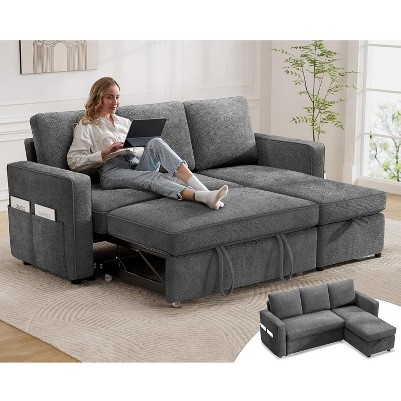 Convertible Sofa Bed: Invisible pull-out bed saves space and can be easily converted between sofa and sleeper sofa. L shaped couch is designed to pull out the middle section into a sleeper couch, which allows for maximum utilization and provides you with a place to rest. Side Pockets: This pull-out sofa bed has two side pockets adding more convenience to your living space. Providing you with a practical solution to keep your essentials within reach. Ideal for storing magazines, remotes, and small tablets, these pockets help you organize your living area while maintaining a sleek, modern look to stay organized and have easy access to your daily essentials - no more searching under cushions or around the room!
