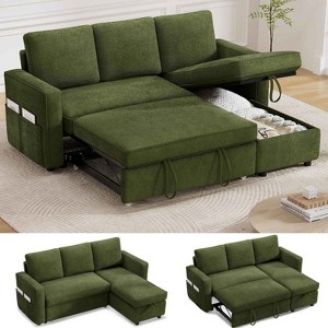 Vipbear 81" Sleeper Sofa Bed, 2 in 1 Pull Out Couch with Reversible Storage Chaise