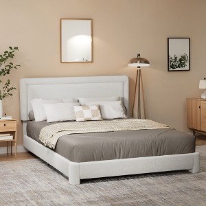 Upgrade your bedroom with the Boucle Upholstered Bed Frame,designed for both style and comfort.Wrapped in ultra-soft,cloud-like boucle fabric and filled with premium cushioning,this bed frame offers a plush,cozy feel while providing excellent back support.The rounded edges on the headboard and footboard ensure safety,making it ideal for families with kids or anyone who prefers a sleek,bump-free design. Built to last,the sturdy metal-reinforced frame and solid wood slats deliver exceptional stability, while noise-reducing foam keeps your sleep peaceful¡ªno box spring needed. Customize your setup with the 3-level adjustable headboard, perfect for mattresses 8-12 inches thick,and enjoy added versatility for reading or relaxing. Plus, assembly is a breeze with included tools and straightforward instructions,so you can set it up quickly and start enjoying your new centerpiece of comfort. Whether you prefer a Twin,Full,Queen,or King,this elegant boucle bed frame blends modern aesthetics with everyday functionality for a dreamy bedroom upgrade.