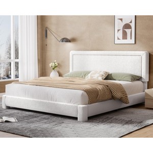 - Wrapped in ultra-soft, creamy boucle upholstery, this cloud-inspired bed frame brings marshmallow-like coziness to your bedroom. The padded soft headboard, gently embracing you, creates the perfect spot for relaxing and enjoying a good book.