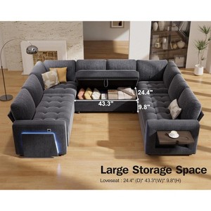 Vipbear Large U Shaped Sectional Couch,Modular Sectional Sleeper Sofa with Pull Out Bed/Reclining Backrest/Table/Storage Seat,Tool-Free Assembly