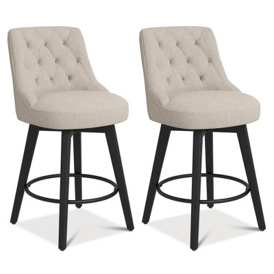 Vipbear Swivel Bar Stools with Backs, 26" Counter Height Bar Stools Set of 2,Upholstered Counter Barstools with Solid Wood Legs