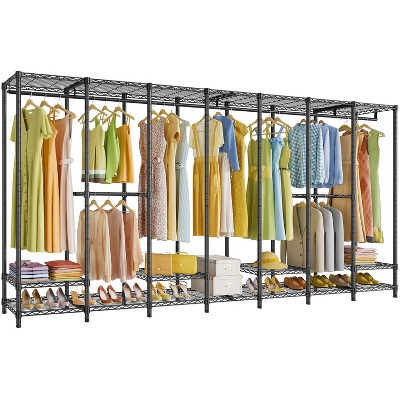 Extra Large Closet Rack: 5 Tiers Garment Rack offers you various storage area to place your clothes, accessories, shoes, etc. It features 8 height adjustable shelves for extra storage capacity.