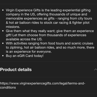 - Virgin Experience Gifts offers thousands of unforgettable experiences across the U.S.—from city tours and food tastings to hot air balloon rides and race car driving.