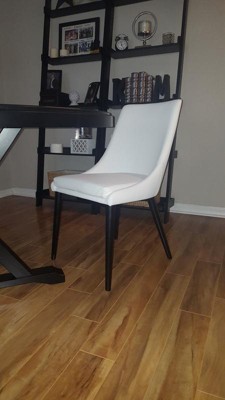 Great office chair. This is a dining chair, but I use it as an office chair. I sit for about 10 hours a day and it's very comfortable. The seat cushion is velcroed to the chair so you can easily remove it to clean, etc. The velcro also helps the cushion from sliding around or falling off. I bought the dark gray color and it's got a basketweave linen look to it which I like. The legs look like a very dark brown color or black. It was easy to put together and it didn't require any power tools.
