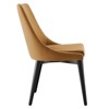 Revitalize your dining decor with the Viscount Dining Chair. Graceful, minimalist lines blend seamlessly with the lush comfort of Viscount soft, stain-resistant performance velvet upholstery, dense foam padding, and rests atop black rubberwood tapered legs. Viscount versatile vintage modern style makes this ideally suited for a variety of rooms. Place Viscount in the dining room or kitchen as a dining chair, or in the living room, entryway, or bedroom as an accent chair. This modern accent dining chair supports up to 300 lbs. and includes non-marking foot caps to protect flooring. Product dimensions: 19L x 23W x 34 H.