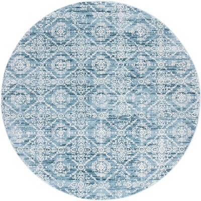 Introducing a stunning round area rug that embodies contemporary elegance. Measuring 6 feet 7 inches in diameter with a height of half an inch, this aqua rug adds a touch of sophistication to any room. Crafted with precision using power loomed technology, it offers a smooth texture and solid color pattern that enhances your space with a subtle yet stylish presence.