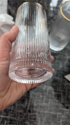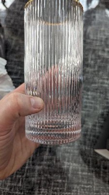 Viski Meridian Highball Glasses Set of 2 - Vintage Drinking Glass, Art Deco Ripple Glassware Design, 15oz Gold Rimmed Collins Glasses Set, Clear