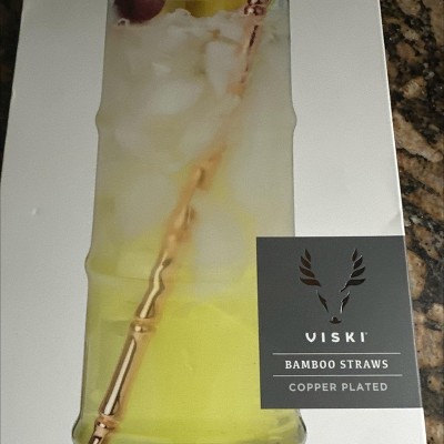 Viski Stainless Cocktail Straws - Reusable Copper Straws - Eco-Friendly Bamboo Finish Metal Drinking Straws 9.5 Inch, Set of 4