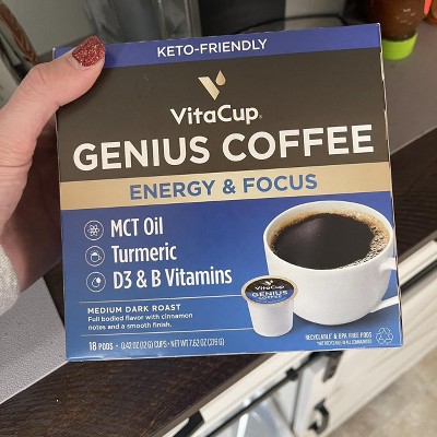 VitaCup Genius Energy & Focus Medium Roast Coffee - Single Serve Pods - 18ct