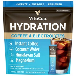 VitaCup Hydration Coffee Instant Packets w/ Electrolytes & Magnesium Medium Roast - 36ct