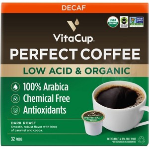 VitaCup Organic Decaf Perfect Dark Roast Low Acid Coffee Pod - 32ct