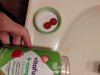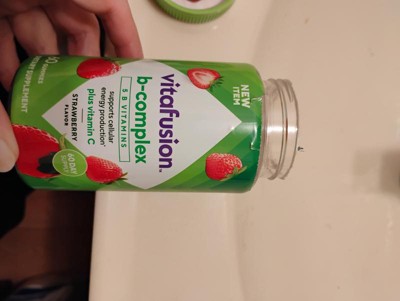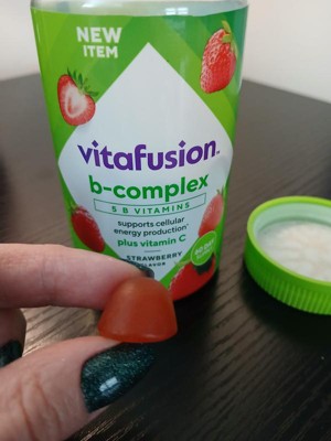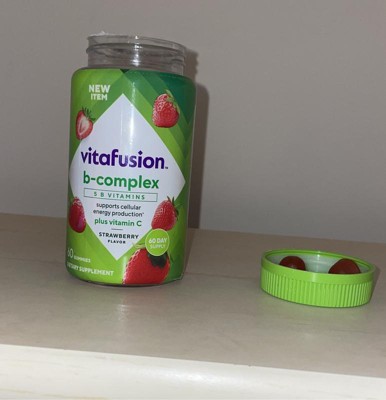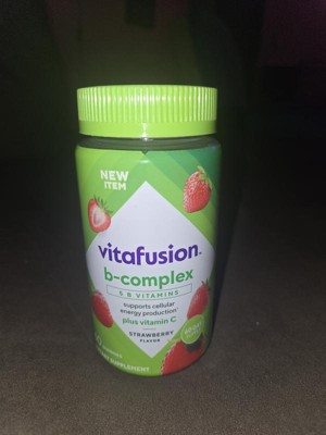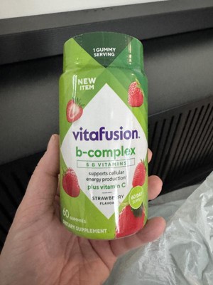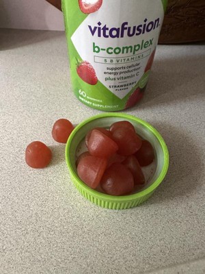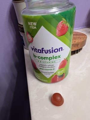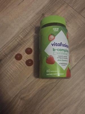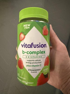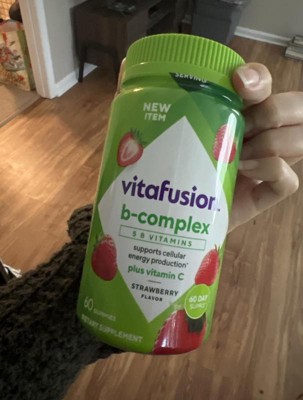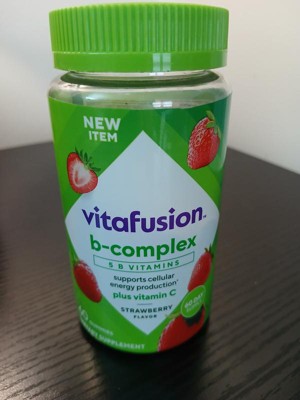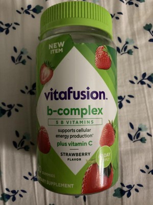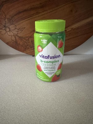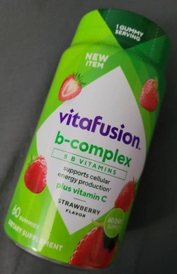 - 60-count bottle of vitafusion B-Complex gummy vitamins with 5 essential B vitamins to support cellular energy production (1), plus Vitamin C, in a delicious Strawberry flavor; 60-day supply