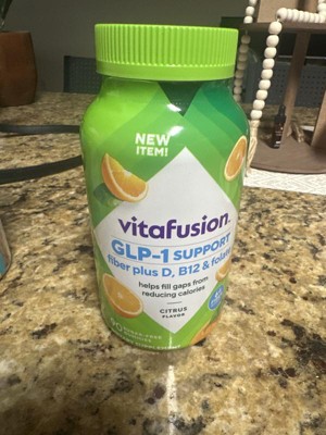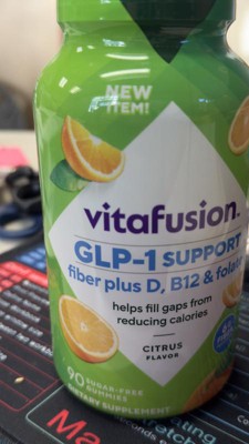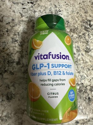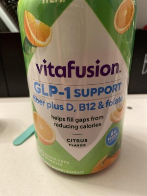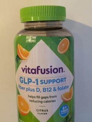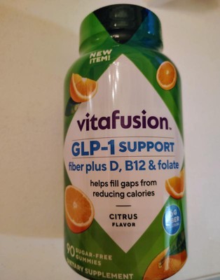 [This review was collected as part of a promotion.] I started taking GLP-1 in March, and I really wanted to be conscious of maintaining a balance of vitamins and fiber so when I saw vitafusion had a gummy that focused on supporting GLP-1, I was excited to try it. Three gummies per day gives you a decent amount of fiber, vitamin D-3, B-12, and folate, and the texture of the gummy is great. However, I couldn't get past the taste. I don't taste even a bit of sweetness in the gummies, so that just leaves you with a slightly off sour citrus taste that's pretty off-putting, with a bad aftertaste. So if you can get past the taste, these gummies are a good way to get some extra vitamins in, which I know is so hard to do sometimes when you're taking GLP-1s.