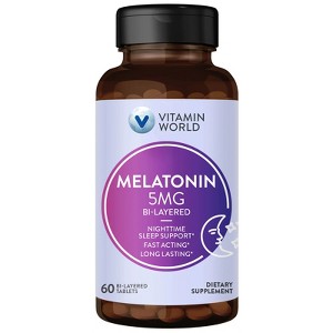 - Vitamin World® Bi-Layered Melatonin 5 mg delivers a dual-action sleep support solution in one convenient tablet.