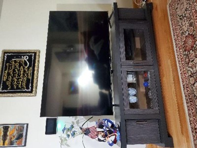 This is a beautiful peace of furniture, but assembly is required (the description said no assembly required). The furniture came in two boxes. The packaging was DIRTY and DUSTY! The instructions were terrible and with very small pictures, just one paper with many pictures (no word description at all), most peaces were missing their numbers and on some, the number didn't match the picture. Some screw holes were not on the peaces of board at all. Also, this is definitely a two people job! And the back of the furniture is a carton board (I was really trying to avoid that). On the positive side, we bought this peace to fit our 65' curved tv. And for that alone, it is a perfect fit!