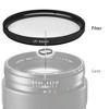The UV filter is also useful as a general protective filter to leave on lenses at all times. Filters help to reduce dust and moisture from reaching your lens element and provide additional protection in case of drops or situations where scratching could occur.