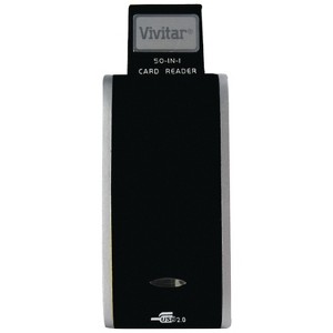 Never miss out on a moment of your memories with the Vivitar 50-in-1 Card Reader. This black high-speed USB 2.0 has 5 slots that support up to 50 memory cards. It maximizes compatibility, working with not only PC and Mac systems, but also all versions of SD/SDHC, microSD, CF, MS and XD cards.