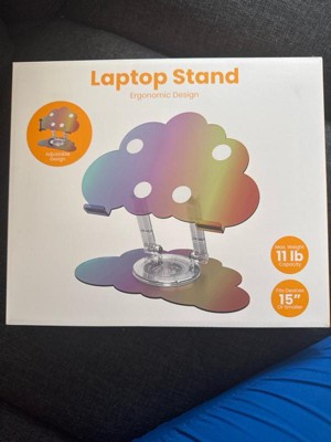 Add a pop of color to your workflow with this Acrylic Laptop Stand in a dreamy cloud print, designed to combine function with flair. Built with a 360° rotatable base, this stand makes screen sharing and collaboration effortless. The ergonomic and adjustable design allows you to customize height and angle, helping relieve neck, shoulder, and eye strain during long work or study sessions. It’s strong enough to support laptops up to 15" and 11 lbs, and when the day’s done, it folds neatly away to keep your space clean and organized. Ideal for students, professionals, and creatives alike.