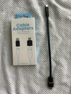 - 2-Pack Cable Adapters: Includes one Micro to USB-C and one USB-A to USB-C adapter.