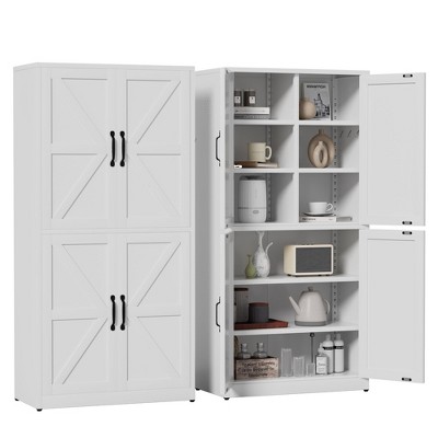VIYET 72"H Heavy-Duty Metal Kitchen Pantry Cabinet,5 Adjustable Shelves+Glass Doors,80LBS/Shelf Freestanding for Kitchen/Pantry/BathroomWhite