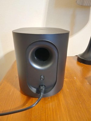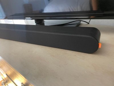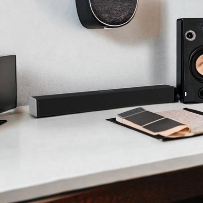 - Two full-range speakers inside the soundbar and one compact wireless subwoofer deliver 96dB of detailed and dynamic high-impact sound that’s perfect for small to medium-sized rooms.