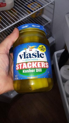 - One 16 fl oz jar of Vlasic Stackers Kosher Dill Pickles